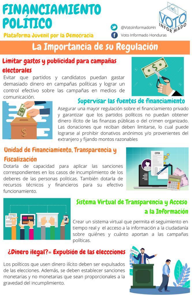 Entre los temas más importantes están la importancia de limitar gastos y publicidad para campañas, supervisar las fuentes de financiamiento, fortalecer la Unidad de Política Limpia, crear un sistema de transparencia y acceso a la información electoral y evitar que dinero de origen ilícito financie partidos y candidatos.